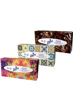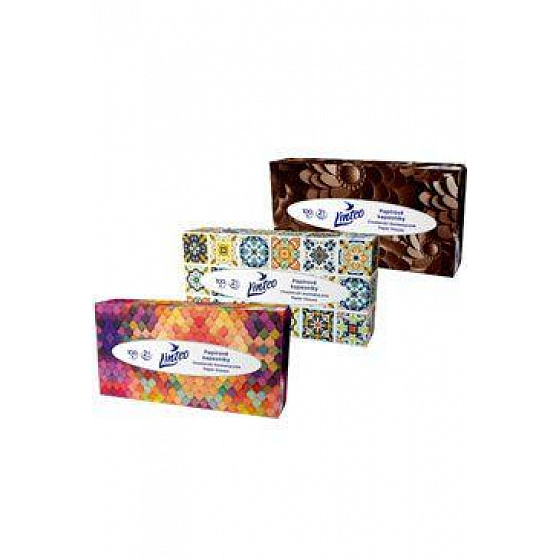 A Linteo finom fehér, kétszintes papírzsebkendői garantálják a magas fokú lágyságot, puhaságot és szilárdságot. Ezek a papírzsebkendők 100% cellulózból készültek. A modern díszítésű dobozban 100 db van, a kartonban négy színváltozatú dobozok vannak keverve, a színválasztás nem lehetséges, a raktárkészlet függvényében kapható.