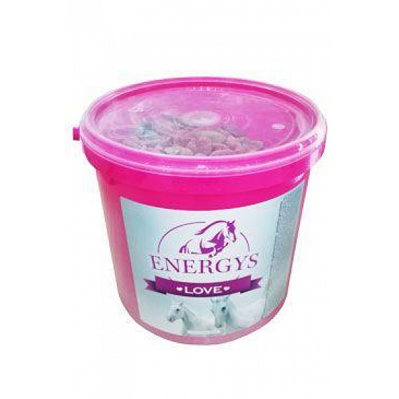 Ízletes almás finomságok, vonzó szív alakban, praktikus vödörben. Az Energys Love egészséges jutalomfalat lova számára mesterséges színezékek és mesterséges ízek nélkül.