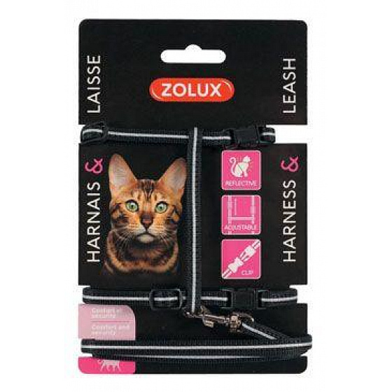 Leírás Macska hám pórázzal 1,2m fekete Zolux