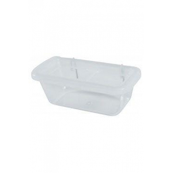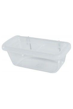 Átlátszó madáretető osztóráccsal a madárkalitkába akasztáshoz. Méret: 9,2 x 5,5 x 5 cm