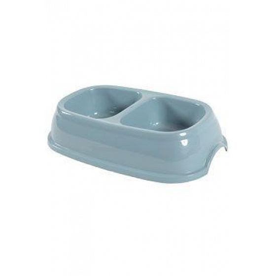 Csúszásmentes műanyag dupla tál a víz és az étel számára. Könnyen tisztítható, macskák számára is alkalmas.