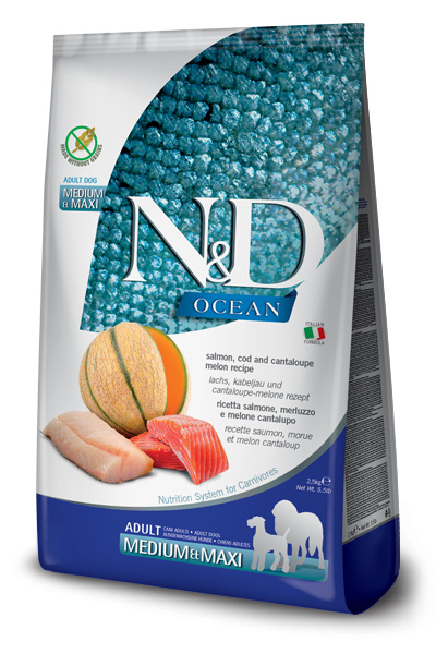 N&D OCEAN Dog Adult M/L Lazac, Tőkehal & Sárgadinnye
