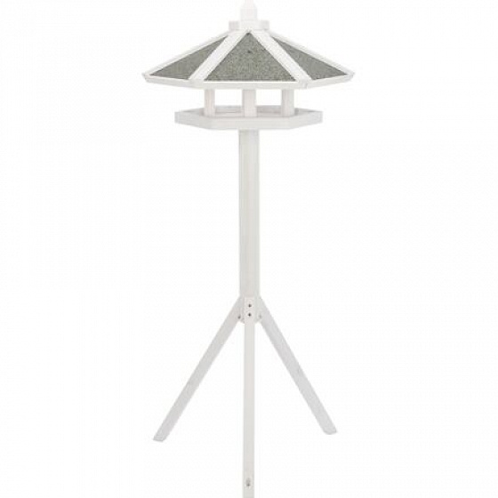 NATURA kültéri etető tetővel és silóval, 1,45m, 65x46cm, fenyőfa, fehér - KORLÁTOZOTT AJÁNLAT