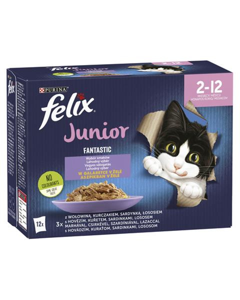 Nestlé FELIX Fantastic cat Multipack junior marhahús, csirke, szardínia, lazac zselés kapszulában 12x85 g