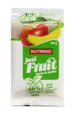 JUST FRUIT banán+alma: gyümölcsösszetevő 51,7 % (mazsola /mazsola, napraforgóolaj/, szárított alma 15 % /alma 99 %, aroma/, édesített banán 14 % /banán 55 %, kókuszolaj, cukor, aroma/), glükóz-fruktóz szirup, rizsliszt, folyékony cikóriagyökér rost, méz, akác gumi, ostya (burgonyakeményítő, olívaolaj), emulgeálószer repcelecitin, természetes aroma, savanyúságot szabályozó almasav. Nyomokban dióféléket, földimogyorót és szezámot tartalmazhat.