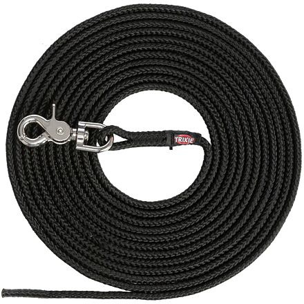 Nyomkövető póráz kerek, karabinerrel, fekete S-L: 20 m/ø 6 mm