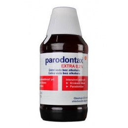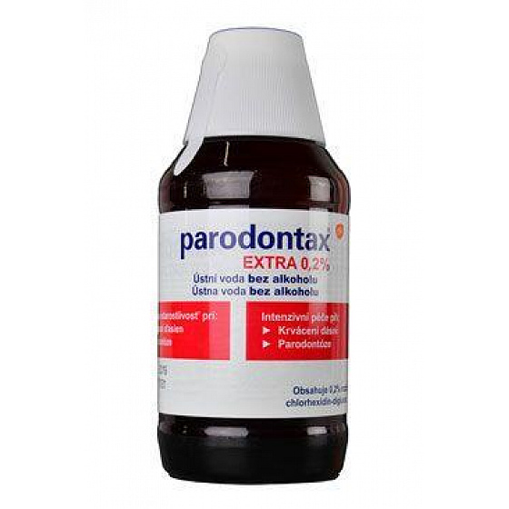 Parodontax Extra 0,2% szájvíz klórhexidinnel. Ez egy antibakteriális oldat, amely rövid távú használatra készült.
