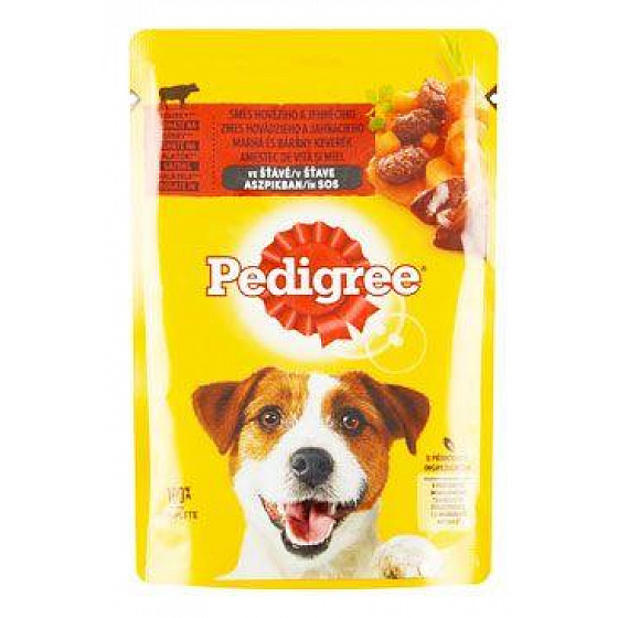 Pedigree tasak Adult "a mi klasszikusunk" aszpikban kínál választékot. Minden fajtánál elsősorban arra fordítottak figyelmet, hogy kutyájának minden étkezésnél 100%-ban kiegyensúlyozott étrendet kínáljanak. A magas állati fehérjetartalom mellett ez az étel fontos tápanyagokat is tartalmaz az egészséges és kiegyensúlyozott étrendhez, amely egyben nagyszerű ízű is. A rostok természetesen biztosítja az egészséges emésztést, és támogatja azt a különleges anyagot, amely nélkül nem lehetne kalciumot szivattyúzni az erős csontok és ízületek számára. A cink napraforgóolajjal és omega 6-tal kombinálva fényes és sima szőrzetet, valamint egészséges bőrt biztosít. További vitaminok és ásványi anyagok egészítik ki a táplálkozási profilt, miközben erősítik az immunrendszert. A gyártás során nem használtak mesterséges színezékeket, ízfokozókat vagy tartósítószereket. Ez a takarmány sem tartalmaz hozzáadott cukrot. A praktikus tasakoknak köszönhetően a táp könnyen adagolható, és különösen alkalmas kis- és közepes méretű kutyák számára, vegyes etetéshez vagy ízletes jutalomként.