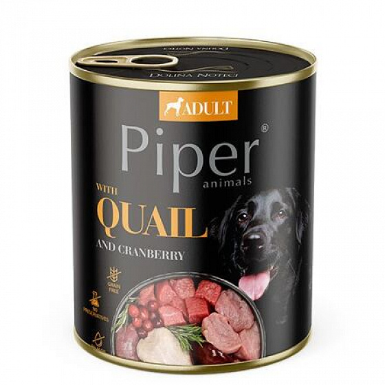 Összetevők: hús és állati eredetű termékek 65% (marhahús 10%, fürj 10%, csirkemáj 6%, sertéshús 5%, marhaszív 5%), húsleves, gyümölcs (áfonya 4%), ásványi anyagok, olajok és zsírok (lenmagolaj 0,2%), szárított rozmaring