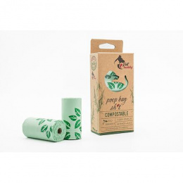 PetBuddy ürülékgyűjtő zacskók, komposztálható, 4 tekercs/ 15 zacskó, zöld nyomtatású