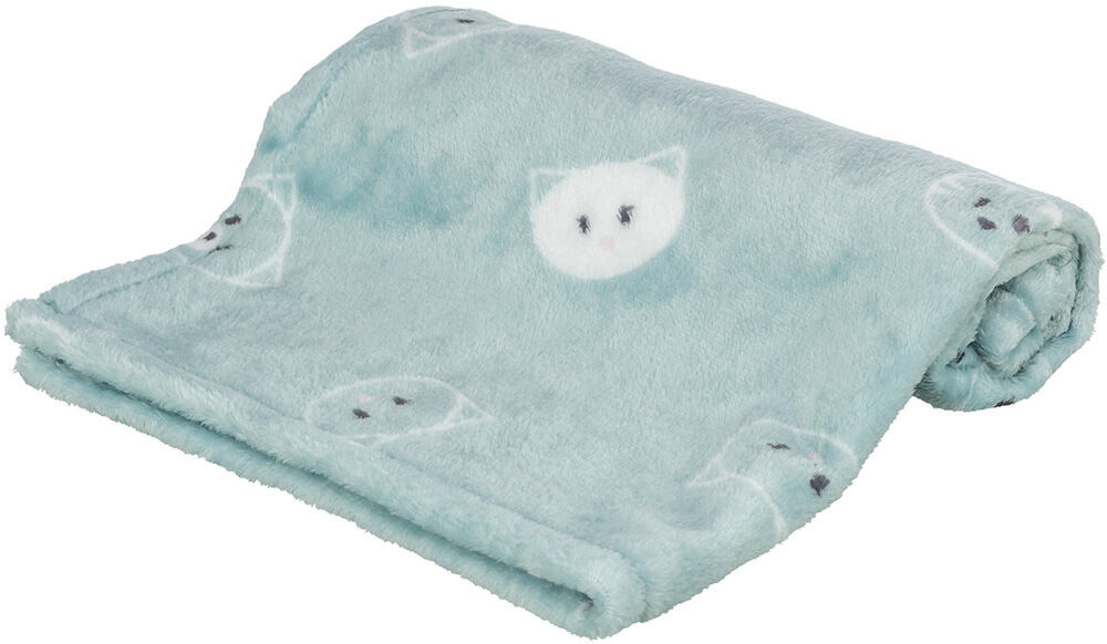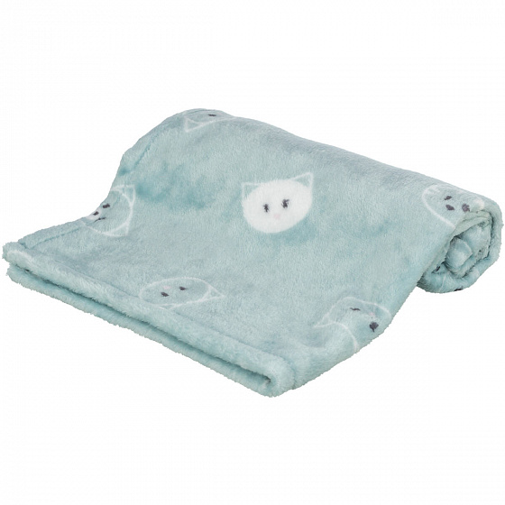 Plüss takaró MIMI, 70 x 50 cm, macskafej minta, zsálya - KORLÁTOZOTT AJÁNLAT