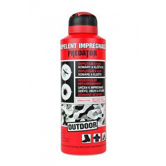 A Predator kültéri repellens impregnáló spray vízálló, repellens és irtó hatású. Ruházat, lábbelik, sátrak, hálózsákok, szúnyoghálók, függönyök stb. impregnálására szolgáló rovarriasztó szer. Nem csökkenti a vízgőzáteresztő képességet, ezért alkalmas olyan funkcionális membránnal ellátott anyagokhoz, mint a Gore-tex, Sympatex, Klimatex stb.
