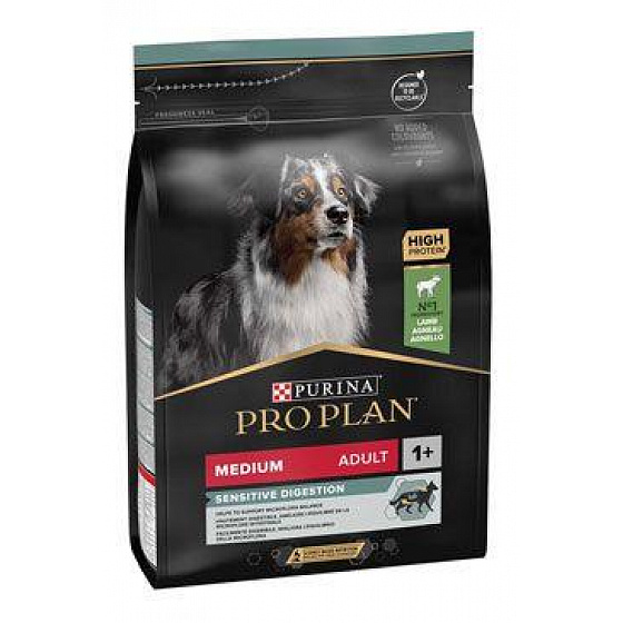 A Purina PRO PLAN® Sensitive Digestion kutyatáp fő összetevője a kiváló minőségű bárányhúsdarabok és más, jól emészthető összetevők, amelyek megkönnyítik az emésztési folyamatot. A granulátum prebiotikumokat is tartalmaz, amelyek tudományosan bizonyítottan növelik a bifidobaktériumok mennyiségét, amelyek javítják a bél mikroflóra egyensúlyát, valamint bentonitot (természetes agyag), amely elősegíti a megfelelő kiürülést. A magas fehérjetartalom segít fenntartani az erős izmokat és az ideális fittséget.
