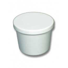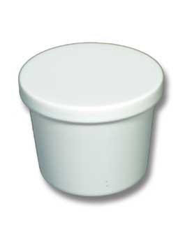 Gyógyszertári műanyag pohár fedővel, 30 ml térfogatú, egészségre ártalmatlan fröccsöntött műanyagból, kifejezetten a gyógyszeripar számára.