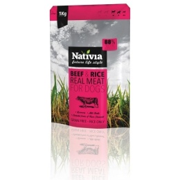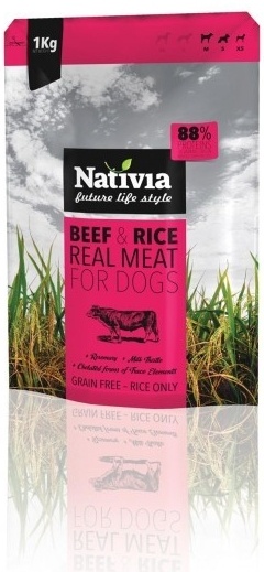 A Nativia REAL MEAT marha & rizs 88% állati eredetű fehérjét tartalmaz, így a piac vezető márkái közé tartozik.