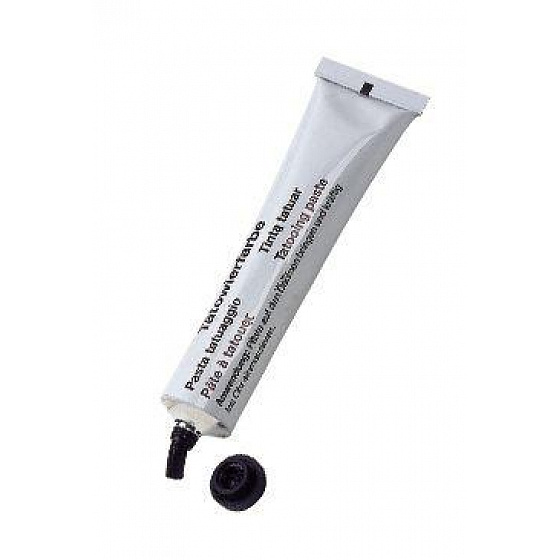 a tetovált szám szúrásaira speciális fekete tetoválópasztát visznek fel.