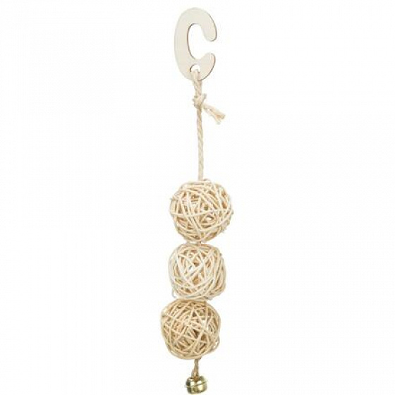 Rattan gömbök csengettyűvel 3 db, akasztós, 24 cm
