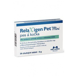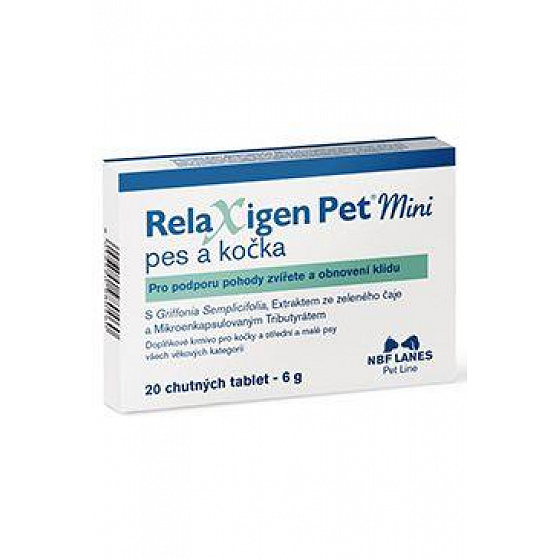 Kiegészítő takarmány ízletes tabletták formájában minden korosztályú kutyák és macskák számára, amely Griffonia simplicifolia-t, zöld tea kivonatot és mikroenkapszulált tributirátot tartalmaz. Ajánlott minden olyan helyzetben, amikor a kutya vagy macska stresszre adott reakciója aránytalan vagy túlzott, pl. költözés, utazás, állat vagy személy érkezése vagy távozása a házba/házból, intenzív akusztikus ingerek, magány, amelyre az állat aránytalan vokalizációval reagál, hiperaktivitás, aránytalan ürítés vagy vizelés, pica, túlzott gondozási igények.