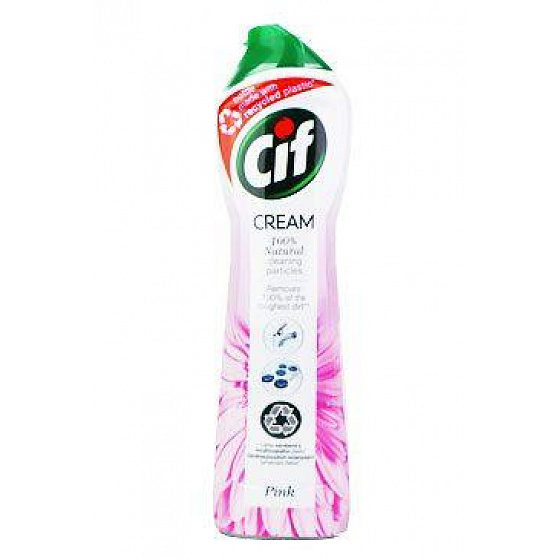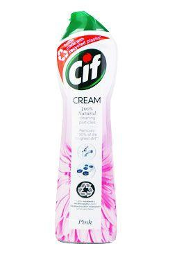 Cif Cream Pink krémes súrolószer kellemes virágillattal. Könnyen eltávolítja a szennyeződéseket, és megtisztítja a látszólag tisztíthatatlan felületeket is az egész házban, beleértve a modern felületeket is. A Cif Pink krém virágillatával a 100%-ban természetes tisztítórészecskéknek köszönhetően károsodás nélkül eltávolítja a legmakacsabb szennyeződéseket is, mint például az odaégett zsír, az odaégett ételmaradékok, a vízkőfoltok, a sár a tornacipőn vagy a piszkos foltok a falakon. Tiszta és gyönyörűen fényes felületeket hagy maga után.