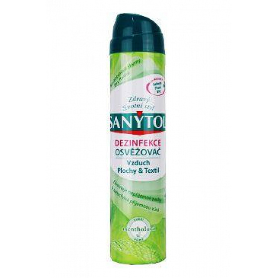 A SANYTOL egyetlen lépésben tisztítja a levegőt és fertőtleníti a felületeket. Formulája tökéletes higiéniát biztosít, és kellemesen friss illatot hagy maga után. A baktériumok, gombák és vírusok 99,9%-át elpusztítja, beleértve az influenza A (H1N1) vírust is. Fertőtlenít és tisztít. Elnyeli és megsemmisíti a szagokat az okozó (mikrobák) eltávolításával. A levegőre, a felületekre és a lakástextíliákra hat. Nem hagy foltokat és kíméletes a textíliákkal szemben. Kellemesen illatosítja az egész háztartást mentolos illattal. tartalom: 300 ml