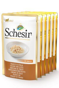 A Schesir zselés tasakok kizárólag kézzel válogatott és 100%-ban természetes összetevőket tartalmaznak. Ezek csak a legjobb hús- vagy haldarabok egy csodálatosan lágy kocsonyában. A kiegyensúlyozott táplálkozás érdekében a nedves eledel fontos A- és E-vitaminnal és a létfontosságú aminosavval, taurinnal látja el macskáját. Végül, de nem utolsósorban, a kíméletes gőzölésnek köszönhetően az összetevőkben lévő íz és tápanyagok megmaradnak.