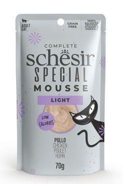 A Schesir Special teljes értékű és kiegyensúlyozott táplálék, gabonafélék nélkül. Kifejezetten túlsúlyra hajlamos macskák számára kifejlesztett, más Schesir haboknál alacsonyabb kalóriabevitellel felnőtt macskák számára, valódi csirkehús alapú, hozzáadott pulykahússal kevert, puha és bársonyos habbá keverve.