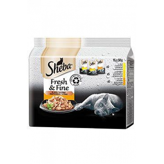 A SHEBA(r) Fresh & Fine macskaeledelek termékcsaláddal könnyedén megadhatja macskájának azokat az ízeket, amelyeket szeretni fog, és a finom falatok nagyszerű kombinációja teljes értékű táplálékot biztosít macskatársa számára. Válogatott alapanyagokból készült, mesterséges színezékek és tartósítószerek nélkül - csodálatos módja annak, hogy etetés közben kötődjön macskabarátjához. Macskaeledel 50 g-os tasakokban kapható. Alkalmas minden 12 hónaposnál idősebb - felnőtt és idősebb - macskának.