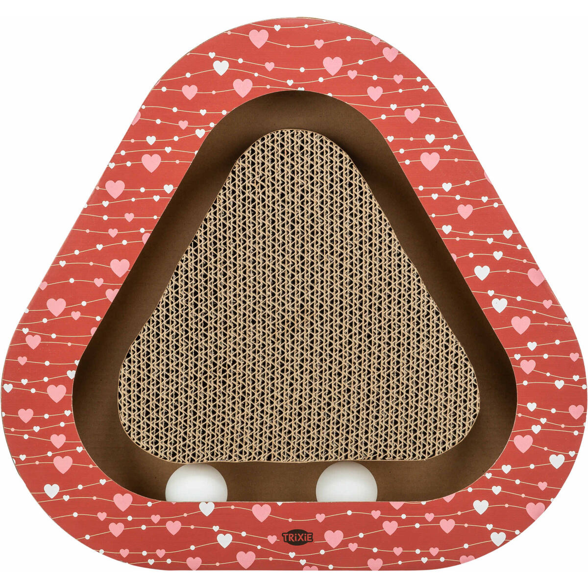 VALENTINE kaparó karton háromszög, labdákkal és macskamentával, 36 x 5 x 36/36 cm, piros - KORLÁTOZOTT AJÁNLAT
