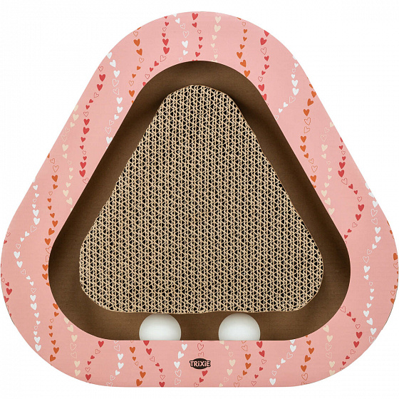 VALENTINE háromszög kaparókarton, labdákkal és macskamentával, 36 x 5 x 36/36 cm, lazac - KORLÁTOZOTT AJÁNLAT