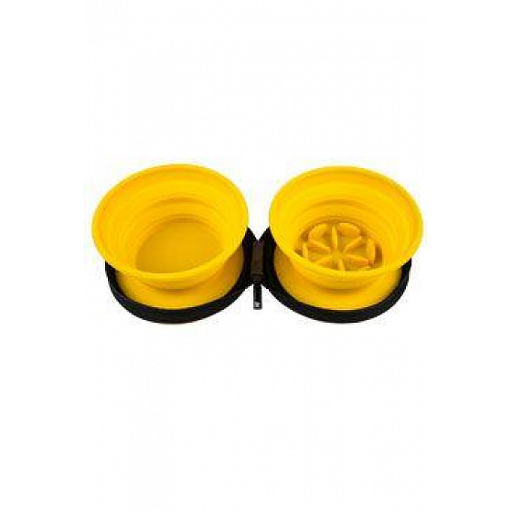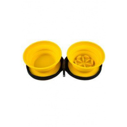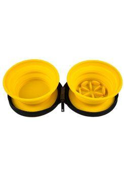 Egyszerűen a legjobb utazótál a piacon. Ez a két összecsukható tál kiváló minőségű szilikonból készült, mindkettő 350 ml-t képes befogadni, és kiválóan alkalmas arra, hogy ételt és vizet biztosítson kedvencének. A dupla utazótálunknak ez a változata azonban egy csodálatos új funkcióval rendelkezik, amely lelassítja az ételfalást. A tálak tépőzárral vannak rögzítve a tokhoz, a tok pedig kiváló minőségű és tartós cipzárral van ellátva. A tálak négy élénk színben kaphatók.