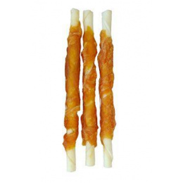 A bőrből préselt, szárított csirkehússal bevont finomság. a harapás erősíti a rágóizmokat, és egyút