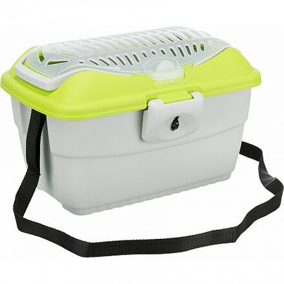 Szállító doboz MINI CAPRI pánttal, 40x2x30cm (max. 2 kg), világosszürke/zöld
