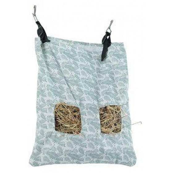 Pálmaleveles mintájú textil szénajászol nyulaknak.állítható pántok, kampók és tépőzáras rögzítés a f