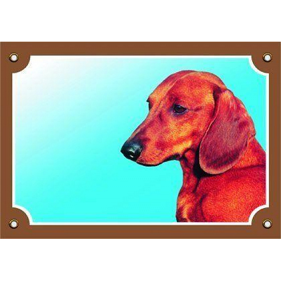 Színes tábla Vigyázat, kutya, Rövidszőrű tacskó