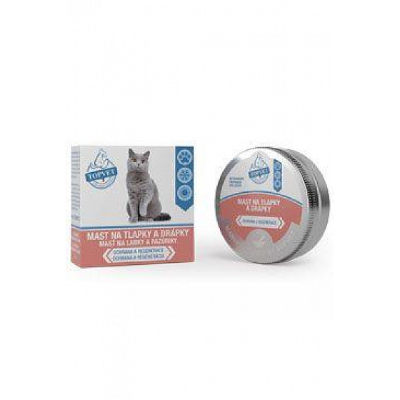 A Topvet mancs- és karomkenőcs luxus termék a mancsok, karmok és ágyékuk bőrének megelőző kezelésére. A kenőcs helyi védőhatást fejt ki a káros környezeti hatásokkal szemben, különösen a só, a szóróanyagok, a forró aszfaltburkolatból és az útfelületekről felszabaduló irritáló anyagok, a túlzott nedvesség, a por, a sár, az idegen anyagok stb. hatása ellen. A kenőcs optimálisan táplálja, regenerálja és gyógyítja a karmokat és azok ágyát. Csökkenti a karmok törékenységét és törését, növeli rugalmasságukat és szilárdságukat.