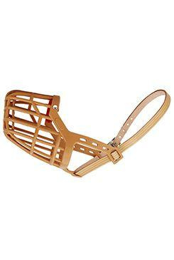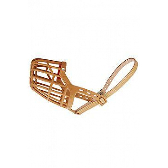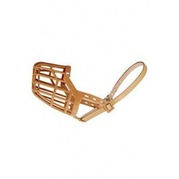 Kutyaszájkosár, műanyag, bőrszíjjal.