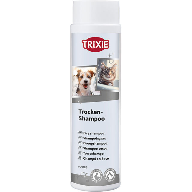 Használati útmutató: Szórja be egyenletesen a száraz állat bundáját a porral, masszírozza be, majd kefével fésülje ki vagy törölje le száraz törülközővel.