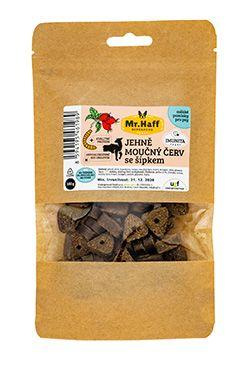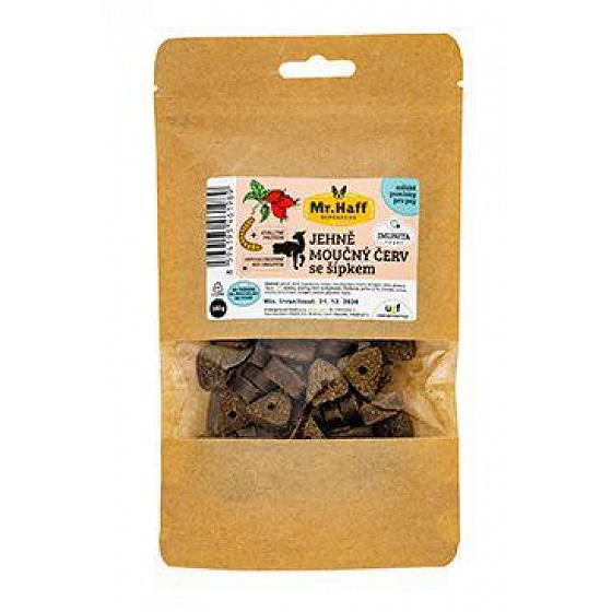 Félig puha jutalomfalatok rovarfehérjével, amelyek a kutyák táplálkozási igényeit figyelembe véve készültek. Nem tartalmaznak gabonaféléket vagy baromfifehérjét, így kiváló választás az ételallergiában szenvedő kutyák számára. A benne lévő csipkebogyó magas C-vitamin tartalmának köszönhetően erősíti az immunrendszert, és megfelelő kiegészítő a mozgásszervi rendszer támogatására. Színezékek és ízesítők nélkül.