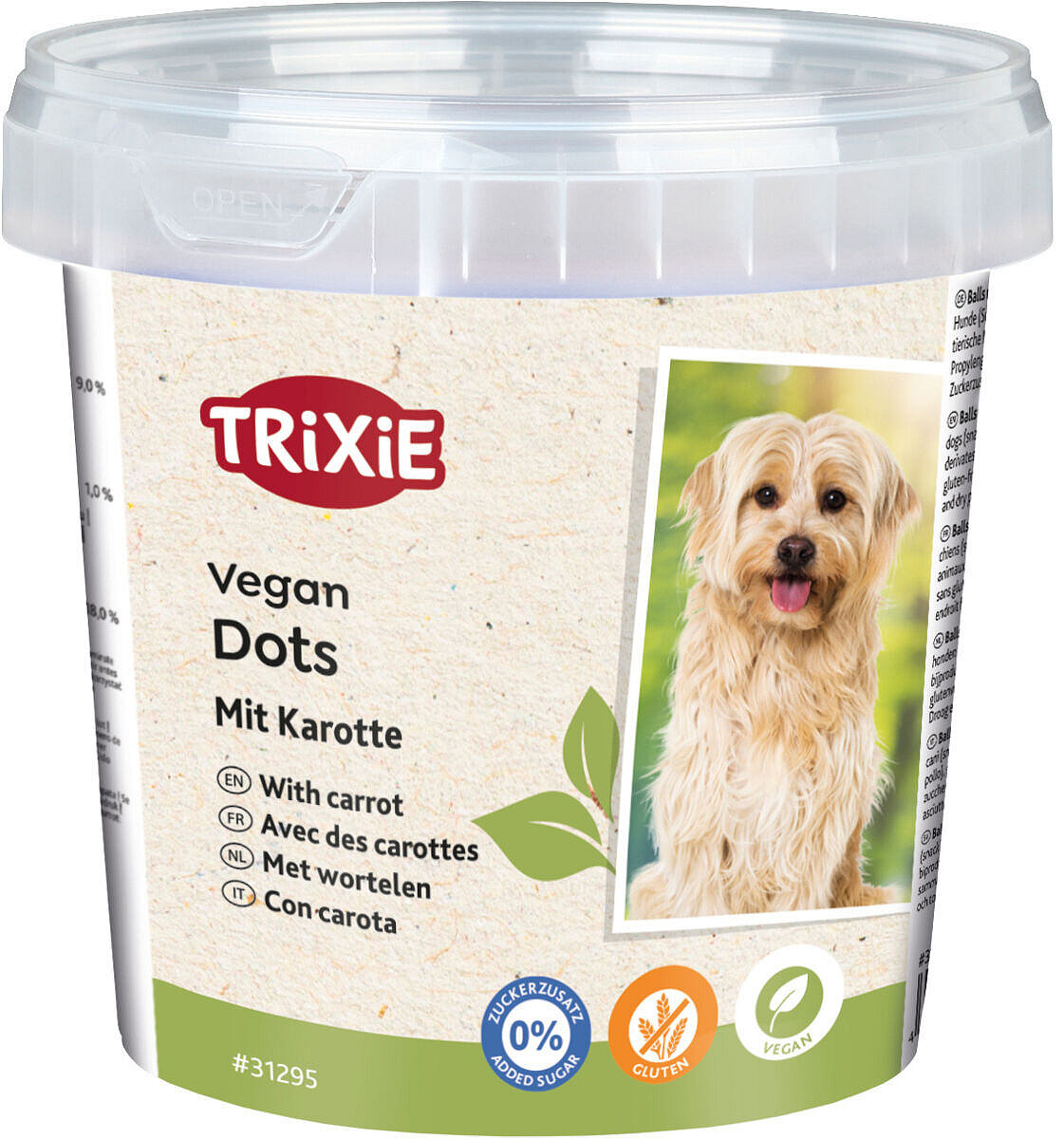 Összetevők: növényi eredetű melléktermékek, zöldségek (ebből 4% sárgarépa), propilénglikol, olajok és zsírok