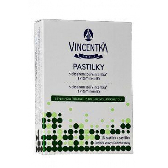 A Vincentka gyógynövényes ízesített cukorkák ásványi sókat tartalmaznak, amelyek jótékony hatással vannak a nyálkahártyára. A szájüreg és az orrgarat nyálkahártyájának ápolására szolgálnak. A természetes ásványvízből származó sók Vincentka nedvesíti és frissíti, így a pasztillák kiváló segítséget nyújtanak a fokozott hangszálterhelés esetén.