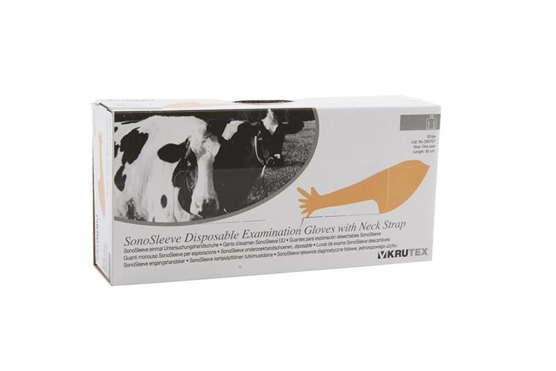 Vizsgálati kesztyű.KRUTEX SonoSleeve vállpánttal, narancssárga 90 cm, 50 db