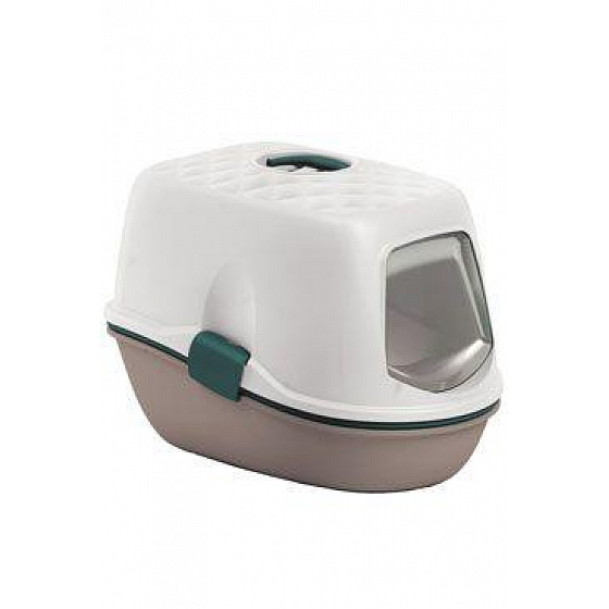 Innovatív és gazdaságos beltéri macska WC. A WC egy fogantyúval és csuklós ajtóval ellátott felső fedélből, 2 tálcából és 1 betétszűrőből áll. A szita lehetővé teszi a szennyeződések elkülönítését és a tiszta alom újrafelhasználását (a tálcák cseréjével), így elkerülhető az alom kiömlése.