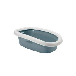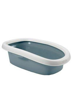Tágas, nyitott alomtálca macskáknak, megerősített peremmel, amely megakadályozza az alom kiömlését.