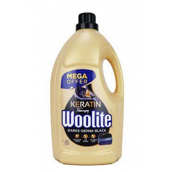 Woolite Keratin Therapy Darks Denim Black egy rendkívül hatékony folyékony mosógél farmer, fekete és sötét ruhákhoz, amely nemcsak hatékonyan tisztít, hanem megvédi a ruhák színeit a kifakulástól is. A keratin tartalmának köszönhetően segít megvédeni a textilszálakat, puhaságot kölcsönöz nekik, megvédi a bolyhosodástól és nem gyűrődik az anyag.