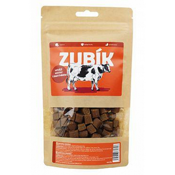 Kiegészítő eledel kutyáknak, marhahús kockák homoktövissel.